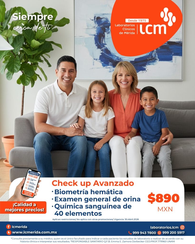 El Check Up Avanzado es un paquete completo de análisis clínicos diseñado para evaluar tu salud general. Incluye biometría hemática, examen general de orina y química sanguínea de 40 elementos.