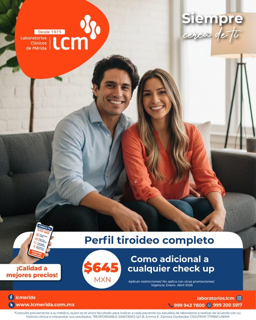 Evalúa de forma integral la salud de tu tiroides con nuestro Perfil Tiroideo Completo en Laboratorios Clínicos de Mérida. Este estudio incluye el análisis de marcadores clave que permiten un diagnóstico preciso de tu función tiroidea.